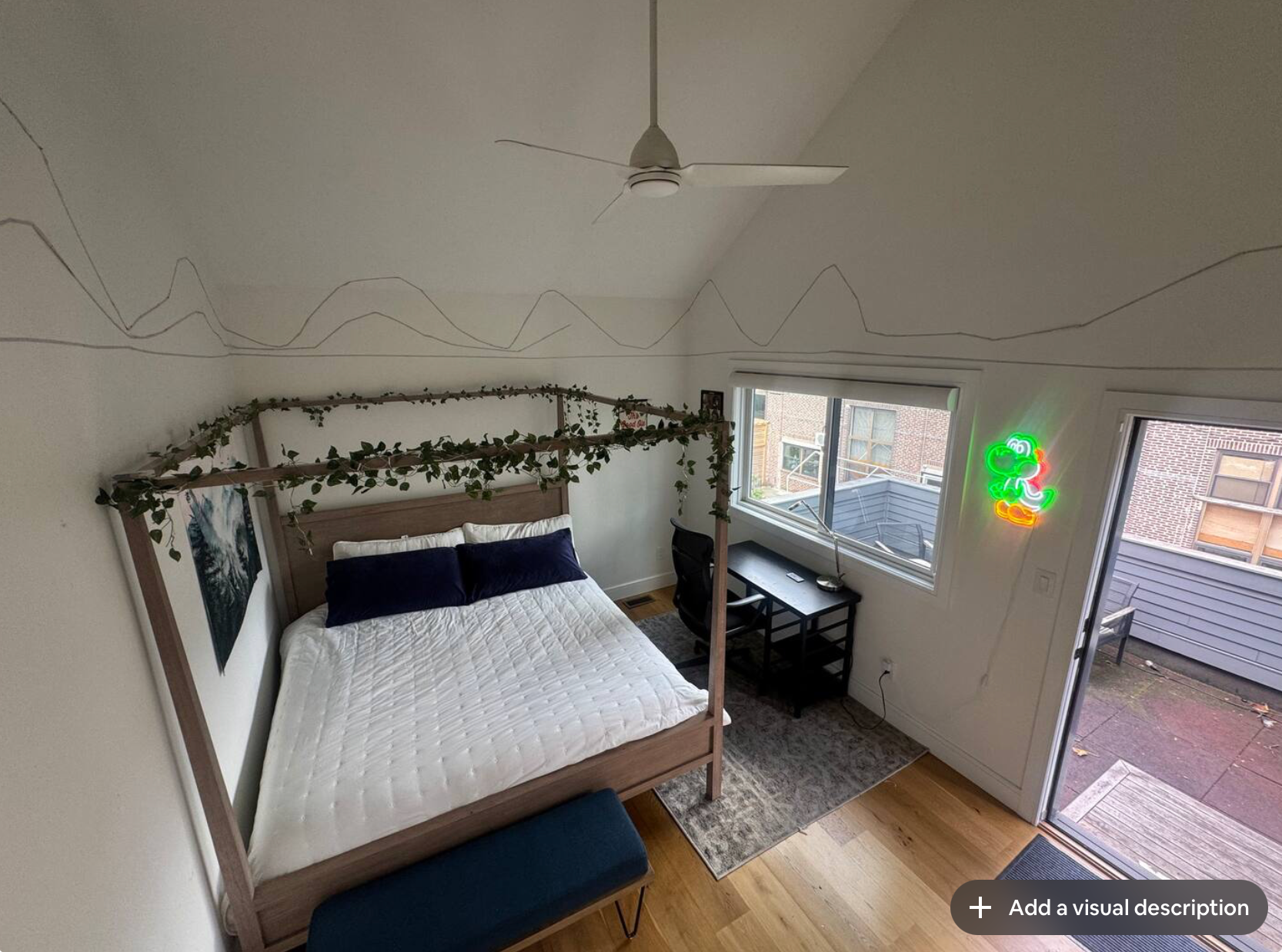 Escape to a luxurious retreat, just 20 minutes from Center City! This spacious room bathed in natural light includes a comfy king sized bed, workspace, and a large private patio space – perfect for morning coffee or evening stargazing.